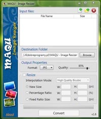 MAQU - Image Resizer to niewielki bezpłatny program do konwersji oraz miany wielkości zdjęć. Dzięki programowi możemy konwertować zdjęcia pomiędzy formatami JPG, PNG i BMP.